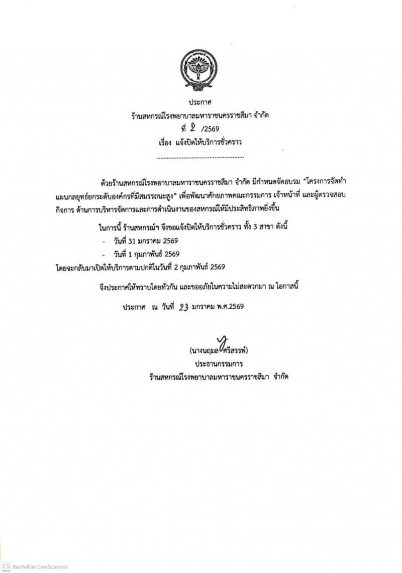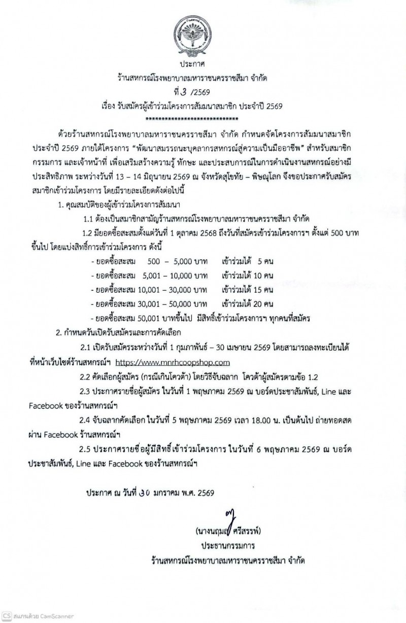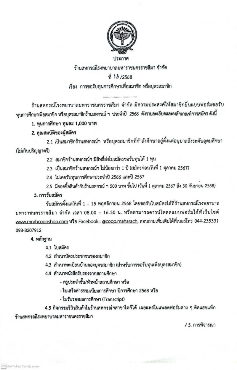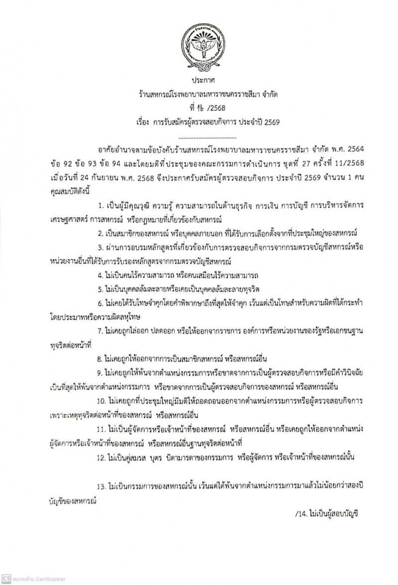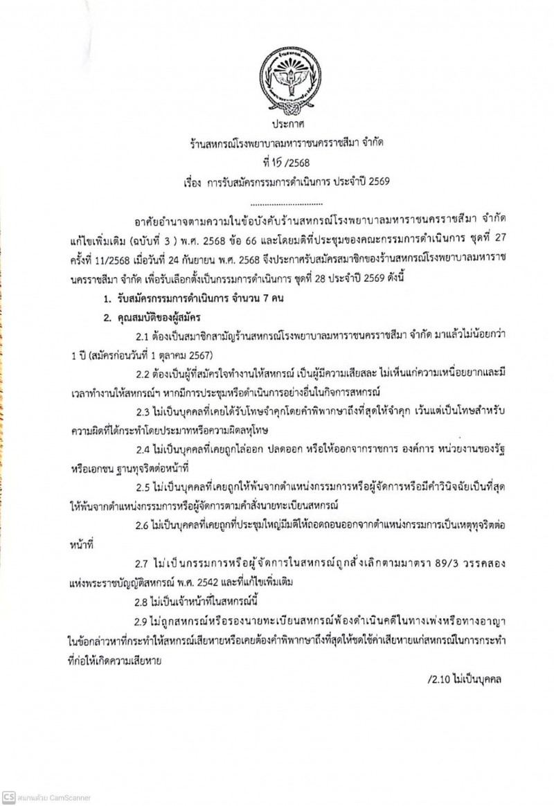 รายชื่อผู้สมัครรับเลือกตั้งกรรมการดำเนินการ ร้านสหกรณ์โรงพยาบาลมหาราชนครราชสีมา จำกัด ประจำปี 2568